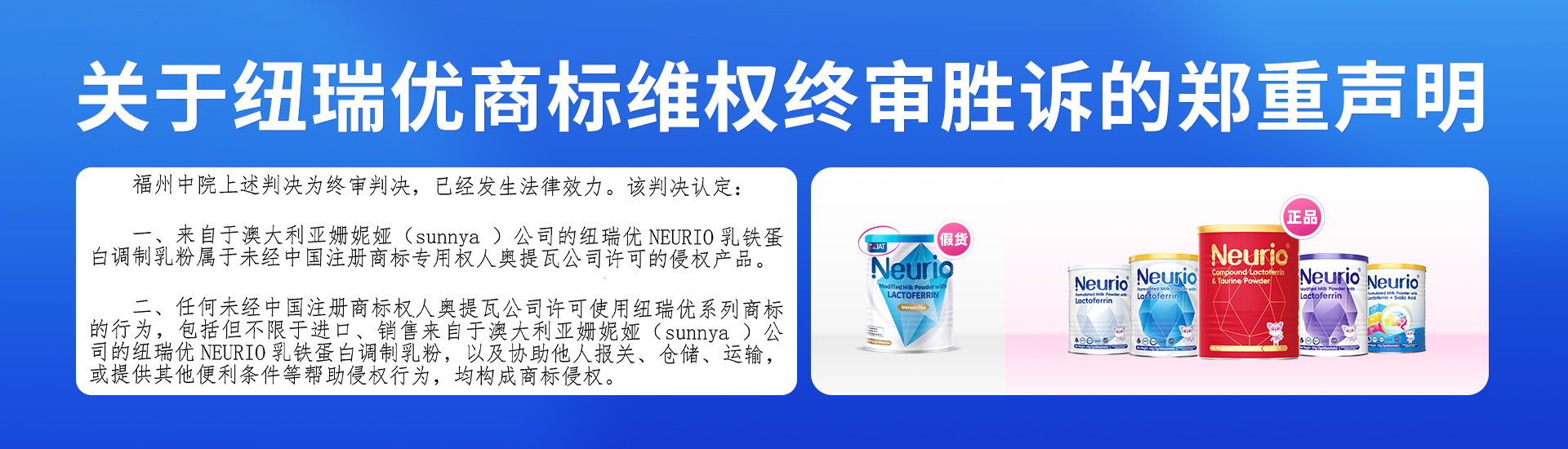紐瑞優Neurio產品從國際引入中國,快速落地生根,并在中國實現品牌騰飛!紐瑞優持續努力將自己打造為一個國際知名品牌,前期主要以澳新產品為主,現已轉型為以國際產品為主,并堅定不移深耕中國本土化產品,擴大國際營銷, 實現從國際引進中國,再從中國走向國際,讓紐瑞優品牌再上一個新的臺階! 自2015年,紐瑞優團隊經過不懈努力成功研發紐瑞優乳鐵蛋白系列調制乳粉,奉獻給熱愛健康的人們。